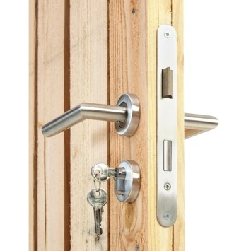 Heb je een houtbetonschutting van douglashout waar je een passende poort bij zoekt? Dan zit je met deze poort voor poort voor poort voor houtbetonschutting Douglas, breedte 110 cm linksdraaiend helemaal goed. Met een breedte van 110cm, waarvan de doorloopmaat ca. 100cm breed is, kun je door deze doorgang prima met een fiets, scooter of kruiwagen lopen. De poort is gemaakt van douglashout, een sterke houtsoort die je niet hoeft te impregneren, beitsen of verven. De poort heeft een metalen frame en wordt geleverd met een aluminium cilinderslot, metalen frame, hengen en verstelbare duimen, zodat je de deur eenvoudig zelf vast kunt zetten. De poort is linksdraaiend en heeft de scharnieren links zitten, wat inhoudt dat de poort vanuit de tuin gezien naar binnen toe opent.